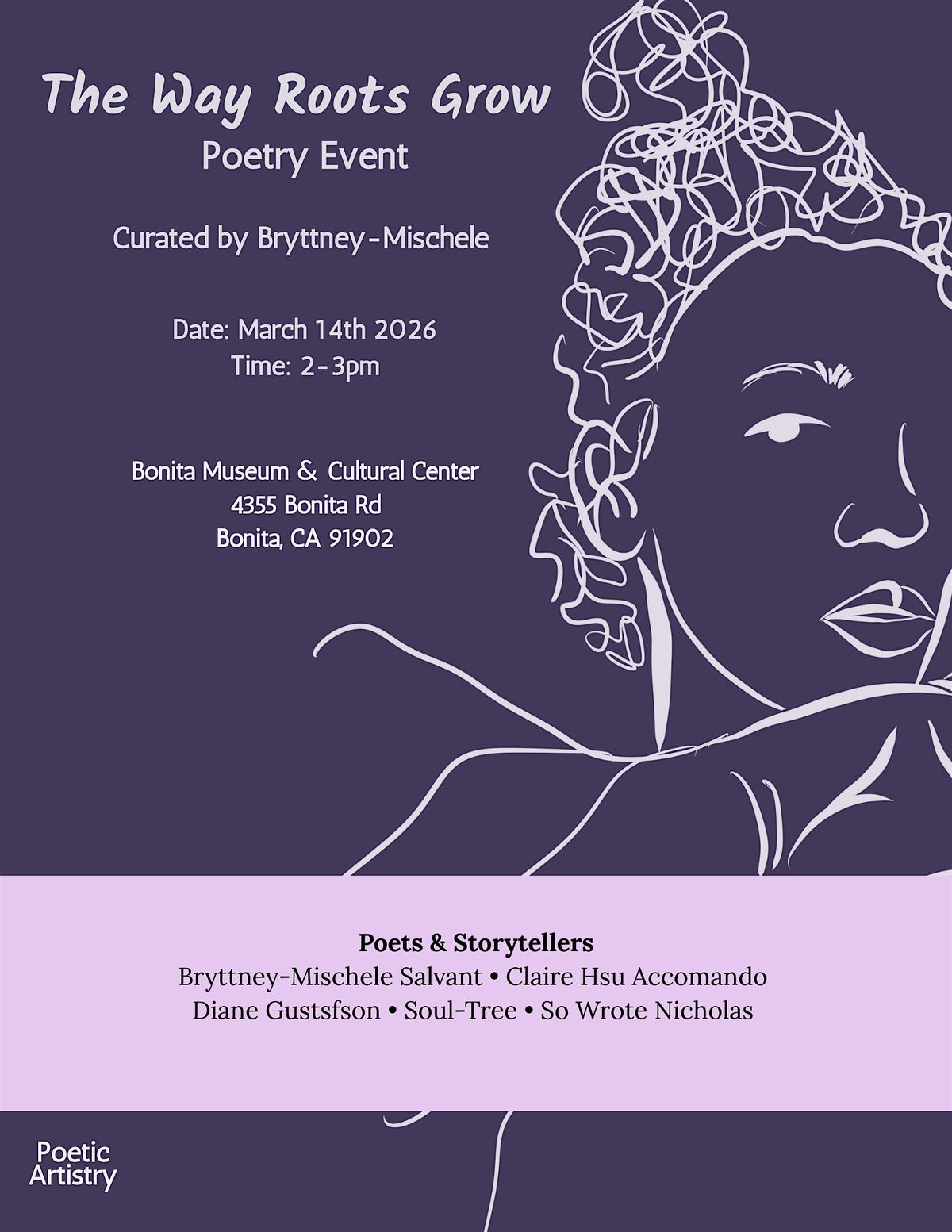 A poetry gathering exploring ancestry, identity, and growth through spoken word and storytelling, held within The Way Roots Grow exhibition.
