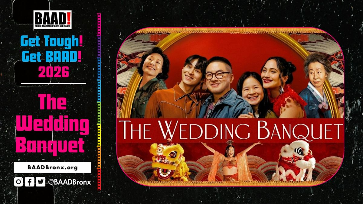 Join us for a fabulous Queer Movie Marathon at BAAD!–The Bronx Academy of Arts and Dance. We'll be screening the 2022 film The Wedding Banquet (PG-13).