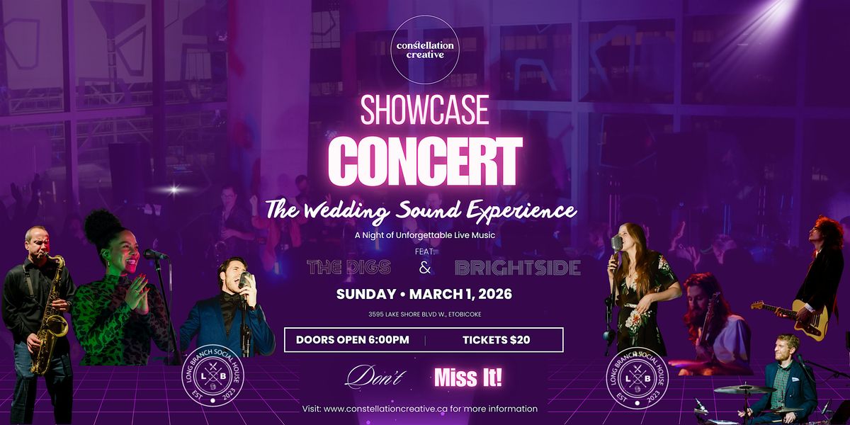 Join us at Long Branch Social House for an evening of unforgettable performances featuring a solo act and two of Toronto’s most requested wedding bands, The Digs and Brightside. This immersive showcase highlights the energy, versatility, and musical excellence that elevate weddings and special celebrations. Enjoy great food, a lively atmosphere, and the chance to connect with the artists behind the music.
