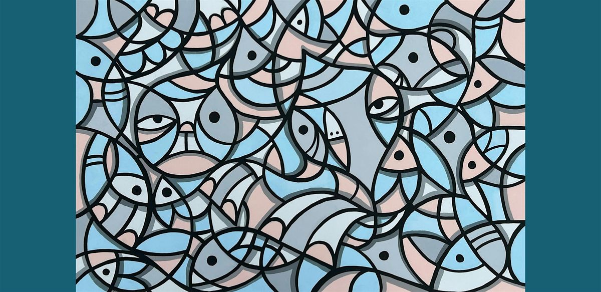 Heavily influenced by skateboard graphics from the 1980’s, Don’s artistic language focuses on containing colorful shapes within black lines, harnessing clean swooping curves that also translate well into his commercial projects. The flowy and interlocking linework he conjures with acrylic tells short stories with the hopes of the viewer walking away with their own interpretation and narrative.