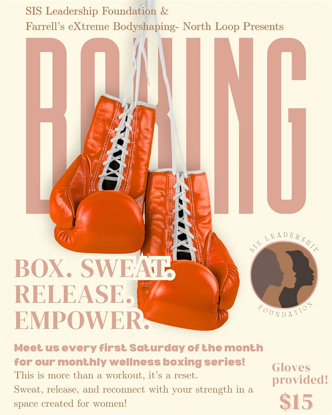 Join SIS Leadership Foundation in collaboration with Farrell's eXtreme Body Shaping- North Loop for The Wellness Code: Punch with Purpose, a monthly, empowering boxing experience created specifically for women of color. This event is part of our ongoing women’s health and wellness series, designed to support physical, mental, and emotional well-being.