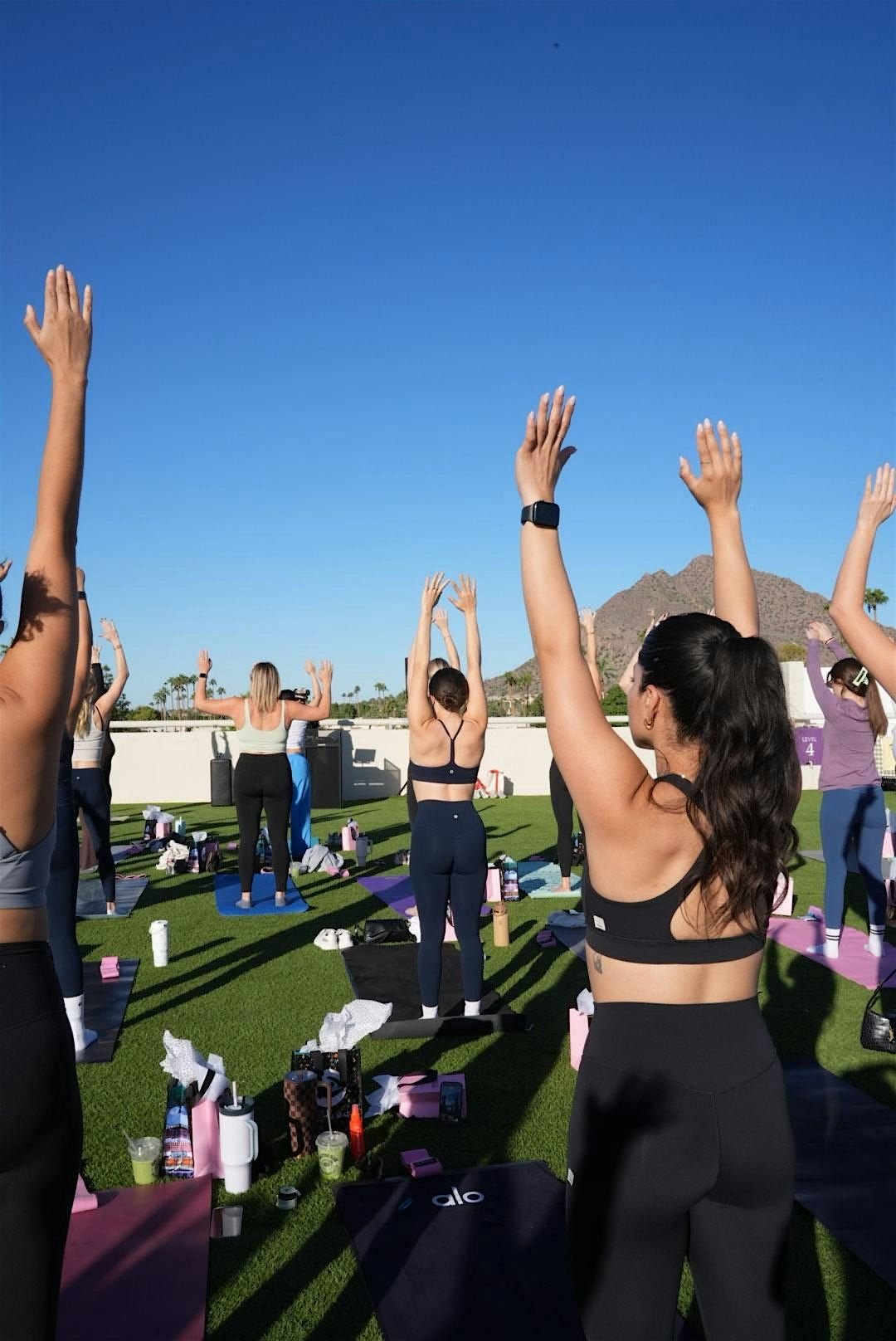 Our wellness village includes a mix of free gifts and items for purhcase, including post-class matcha, coffee, massages, mini facial treatments, giveaways, tarot card reading, wellness shots, healthy snacks, and more. The event takes place on the rooftop of the Purple Garage at Scottsdale Fashion Square Mall (across from Lifetime Gym and behind Toca Madera).