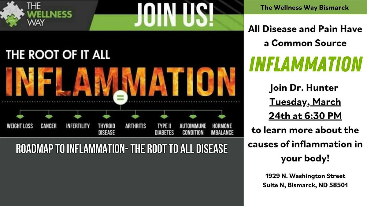 Welcome to The Wellness Way Approach to Inflammation event! Join us at The Wellness Way - Bismarck on March 24, 2026 at 6:30 PM (Central Time) or through Zoom to learn about managing inflammation for better health. Dr. Hunter Puetz will share valuable insights and tips on how to take control of your well-being and live the health of your dreams! Don't miss this opportunity to prioritize your health and wellness. See you there!