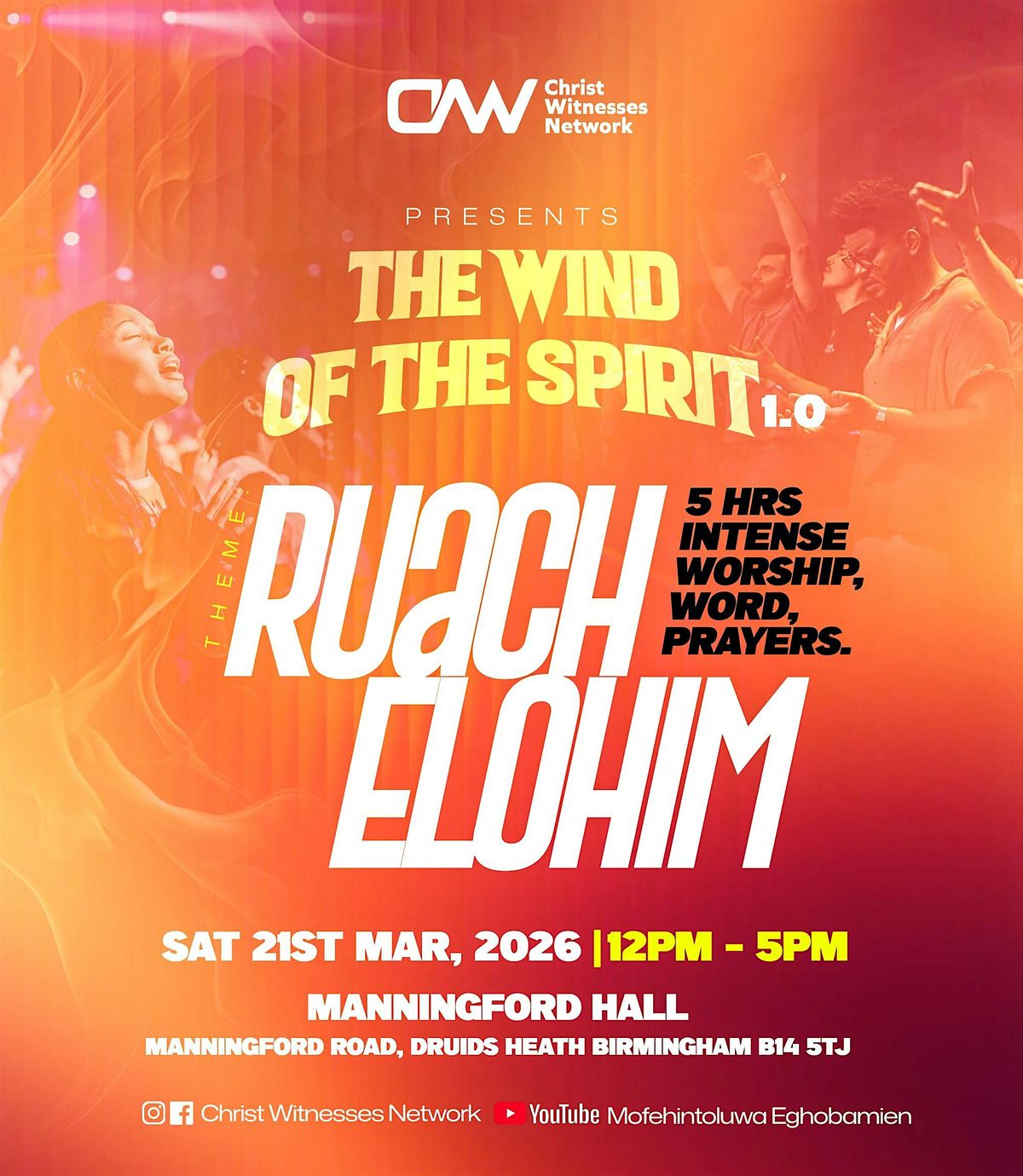 Revival is here. Join WIND OF THE SPIRIT 1.0 – 5 hours of worship, prayer & divine encounter. 21st March 2026, Birmingham. Be there!About this Event
