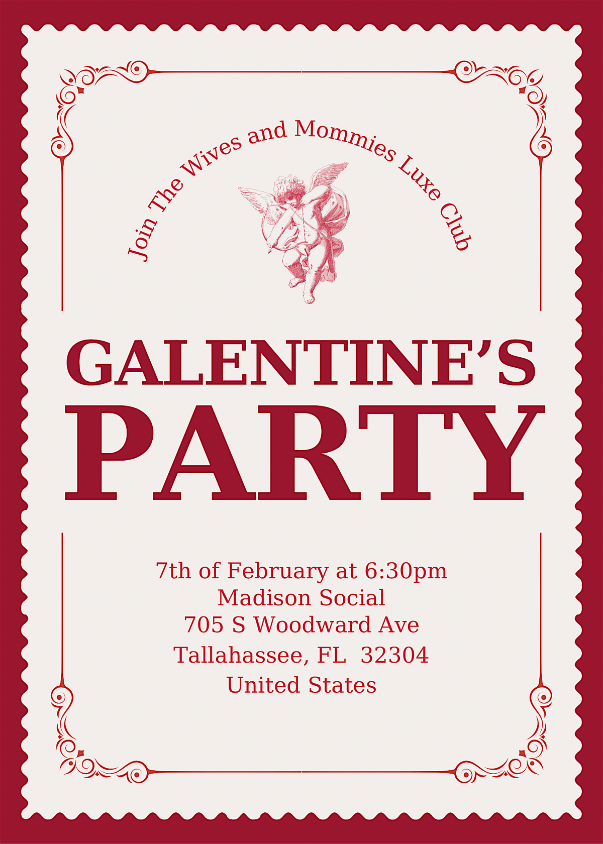 This is a night for the Wives and Mommies. Expect loads of laughs, great vibes, and a chance to mingle with an amazing crew. If you're a wife, a mommy, and love a good time, this is your night to shine. Don't miss out on a luxe evening full of fun, connection, and all the Galentines feels!