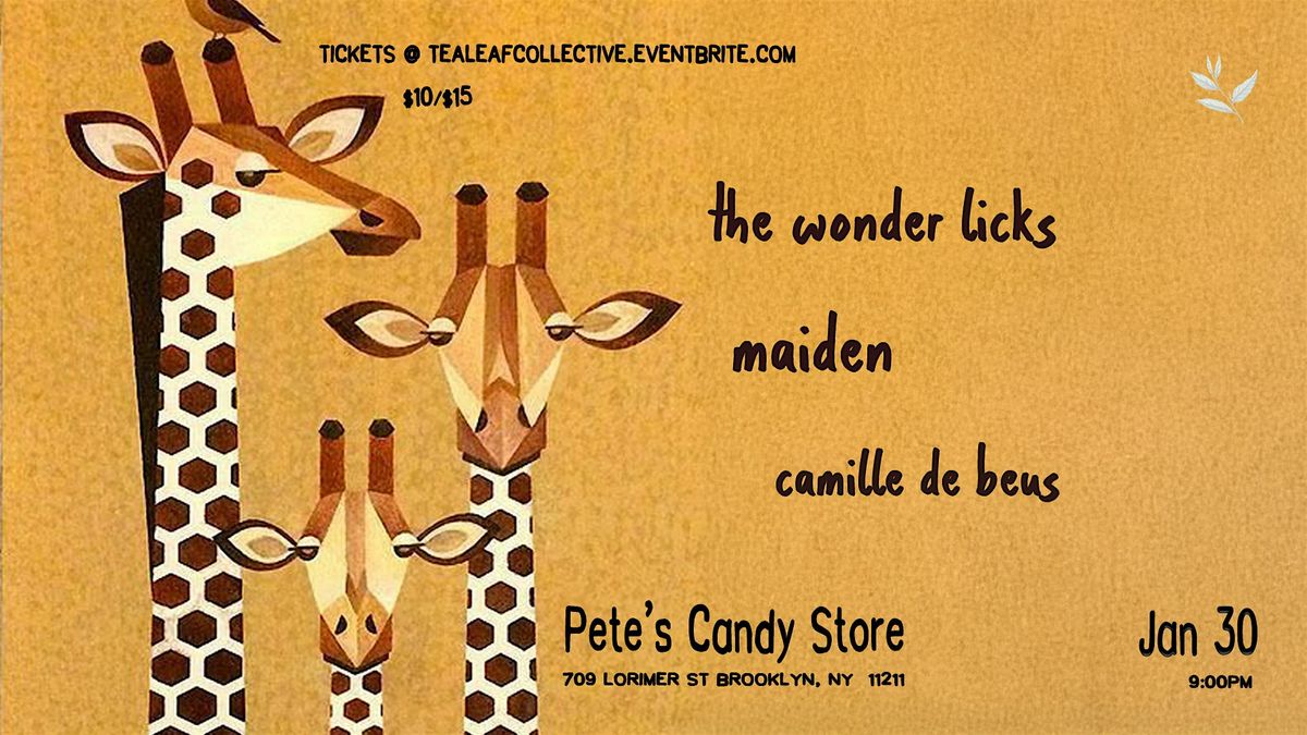 The Wonder Licks / Maiden / Camille De Beus at Pete's Candy Store on January 30th.About this Event