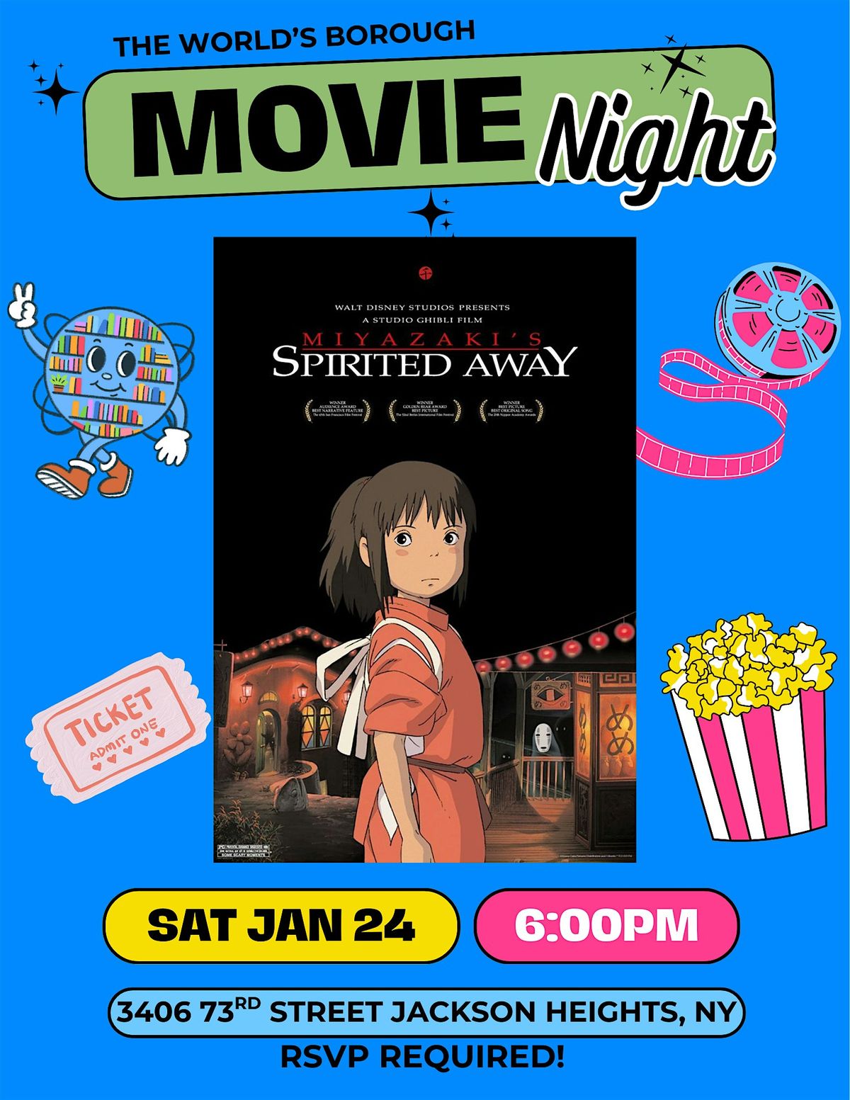 Join us Saturday, January 24th for a cozy screening of Studio Ghibli's Spirited Away!