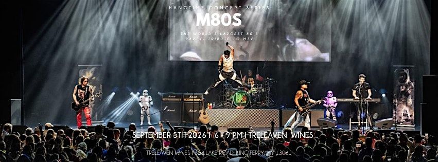Welcome to the ultimate night out at Treleaven Wines! Get ready for an unforgettable experience with The World's Largest 80's Party featuring M80's: Tribute to MTV live in concert. Join us on September 5, 2026 6pm-9pm (Eastern Time) for a night filled with great music, delicious wine, and good vibes. Don't miss out on this opportunity to create lasting memories with friends and loved ones. See you there!