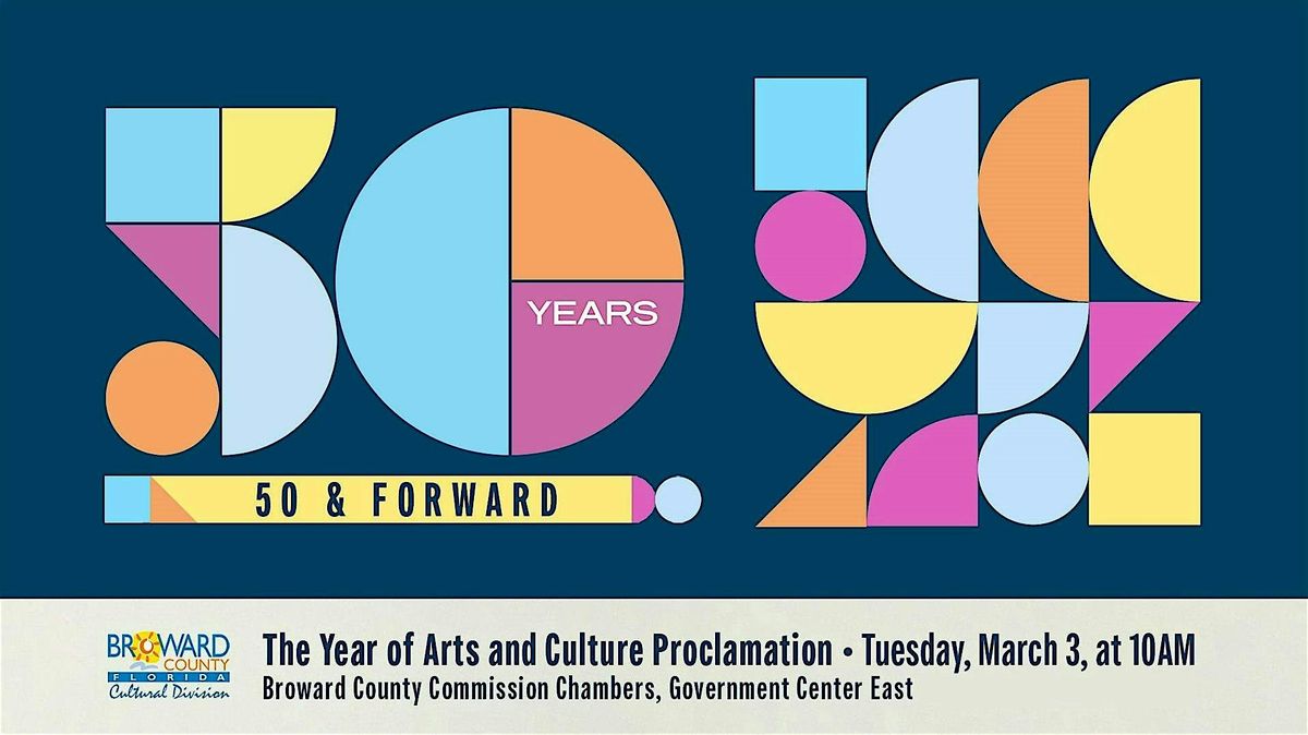 As part of the 50 & Forward campaign, please join the Cultural Division and Cultural Council at the Broward County Commission Meeting next Tuesday, March 3, where the Board of County Commissioners will present a formal proclamation declaring 2026 as the 50th Anniversary of Arts & Culture in Broward County.