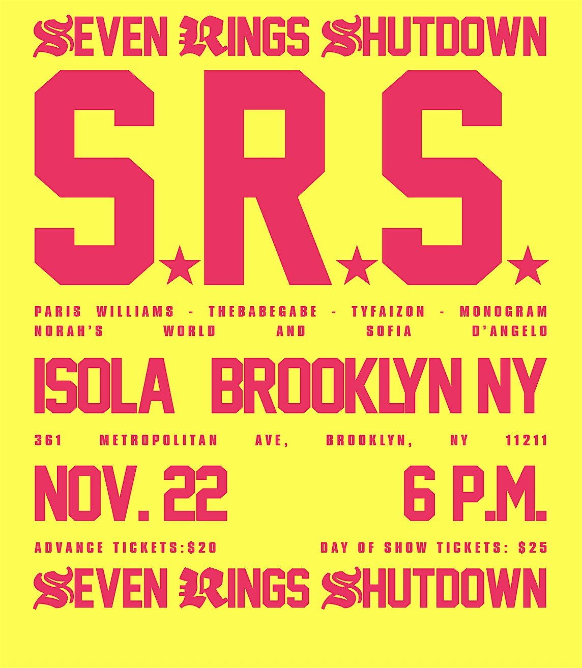 The vibrant Seven Rings Collective makes their NYC debut at the budding Isola venue in the heart of Williamsburg. Featuring sets from Paris Williams, TheBabeGabe, TyFaizon, and Monogram the show will deliver a unique mix of introspective lyrics with colorful and hard hitting production.