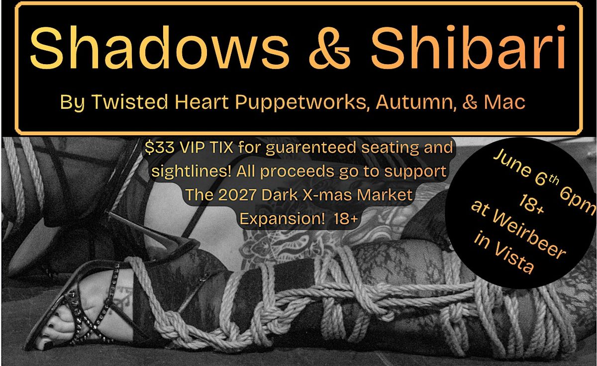 A limited number of VIP tickets are available, offering guaranteed seating with prime sightlines for both the shadow casting and shibari performance. All proceeds from VIP ticket sales will go toward supporting the Vista Art Foundationand helping bring to life the expansion of the 2027 Dark X-mas Market and Wild Hunt Procession.