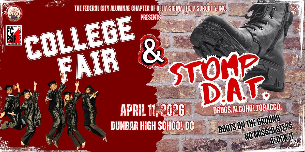 Join The Federal City Alumnae Chapter of Delta Sigma Theta Sorority, Inc. for a powerful day of empowerment, education, and youth excellence at the STOMP D.A.T. & College Fair!
