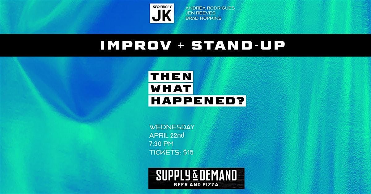 Improv and Stand-up comedy collide, as Seriously JK does a long form style of improv inspired by sets from local stand-up comedians.