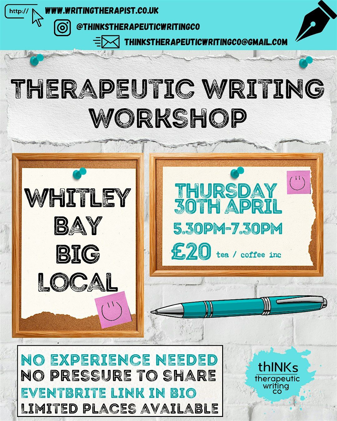 A Therapeutic Writing Workshop for an inspiring and creative experience. This is an in-person event where you can explore your feelings through writing, connect with others, and let your imagination run wild. No writing skills required—just bring yourself and an open mind. It's all about healing, expression, and discovering more about yourself. No writing experience needed and NO pressure to share.