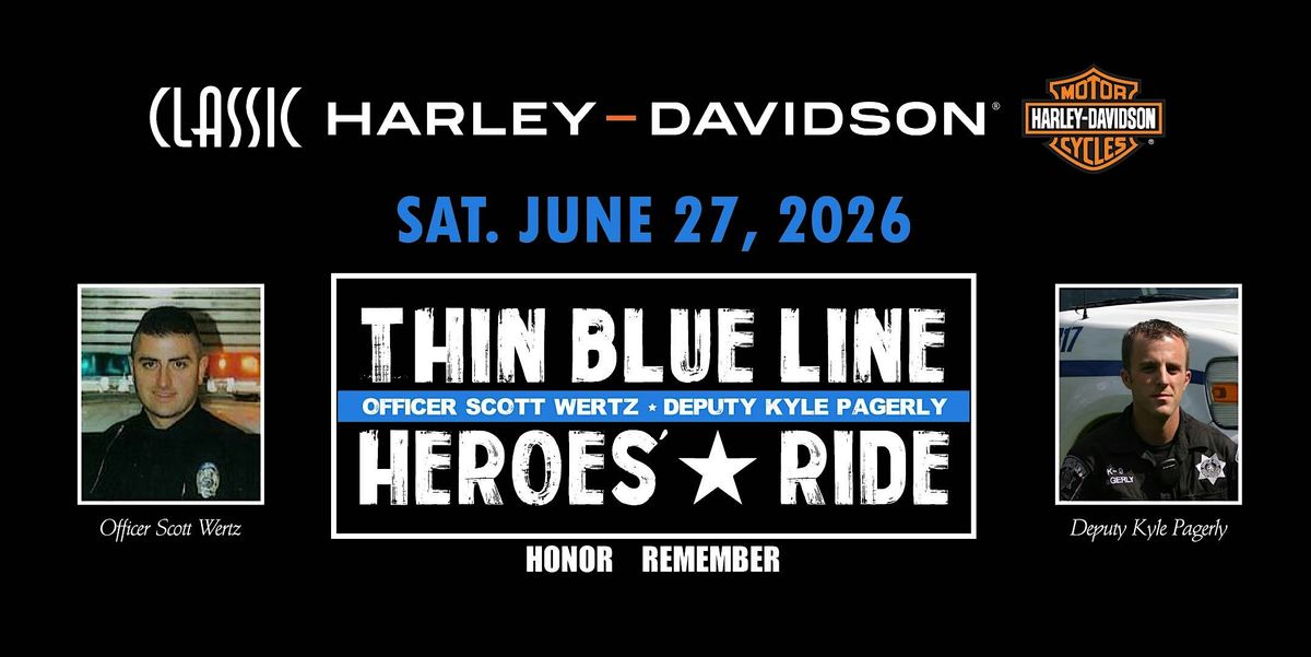 Join us for a powerful day of remembrance, unity, and the open road at the Thin Blue Line Heroes’ Ride. This special event honors the lives and legacies of Scott Wertz and Kyle Pagerly, along with all those who serve and protect under the Thin Blue Line.
