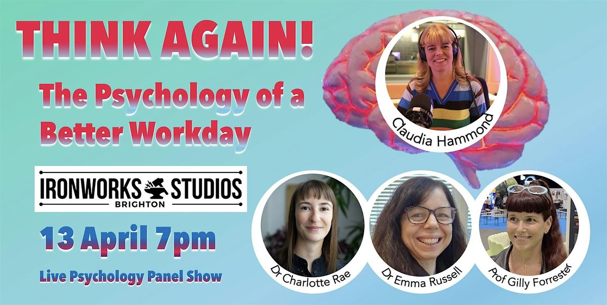 We are just selling a small allocation of tickets for this event on our Eventbrite page, so don't worry if they're sold out, there are more tickets available from Sussex Uni website here- https://onlineshop.sussex.ac.uk/product-catalogue/conference-seminars/school-of-psychology/think-again-the-psychology-of-a-better-workday-7-9-pm-13th-april-2026.