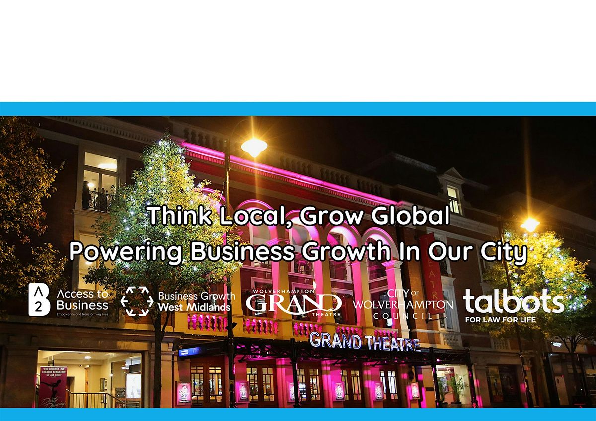 Think Local – Grow Global is a major business growth event delivered by Access to Business as part of the West Midlands Combined Authority West Midlands Business Festival 2026, in partnership with the City of Wolverhampton Council Business Team and our headline sponsor, Talbots Law.