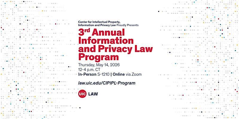 The University of Illinois Chicago School of Law Center for Intellectual Property, Information and Privacy Law proudly presents the Third Annual Information and Privacy Law Program. The hybrid program will consist of panels that cover a broad range of hot topics, such as Chief Privacy Officer views on AI & privacy in regulated industries and the arms race between AI-powered deception and AI-powered surveillance.