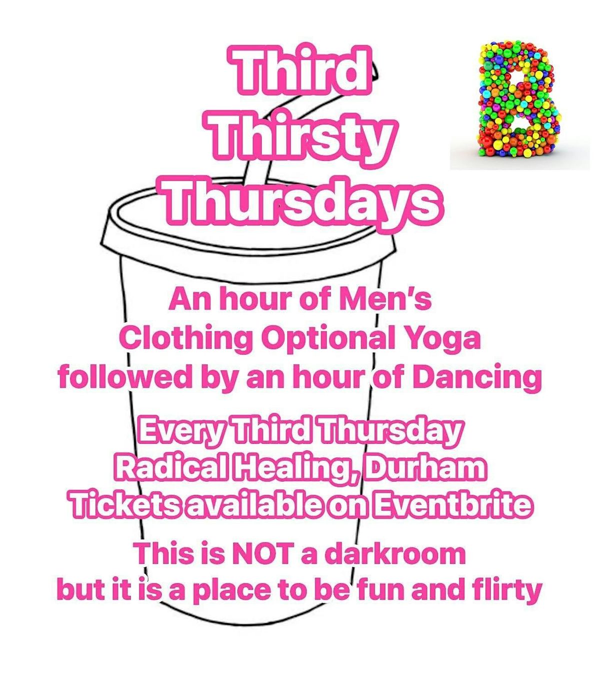 An hour of Men's Clothing Optional Yoga led by Father Disco followed by an hour of Dancing.