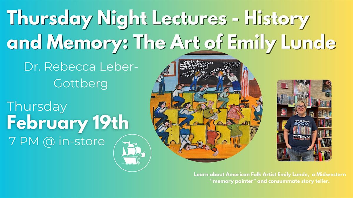 Join us in person for an engaging evening with Dr. Rebecca Leber-Gottberg as she dives into History & Memory: The Art of Emily Lunde.
