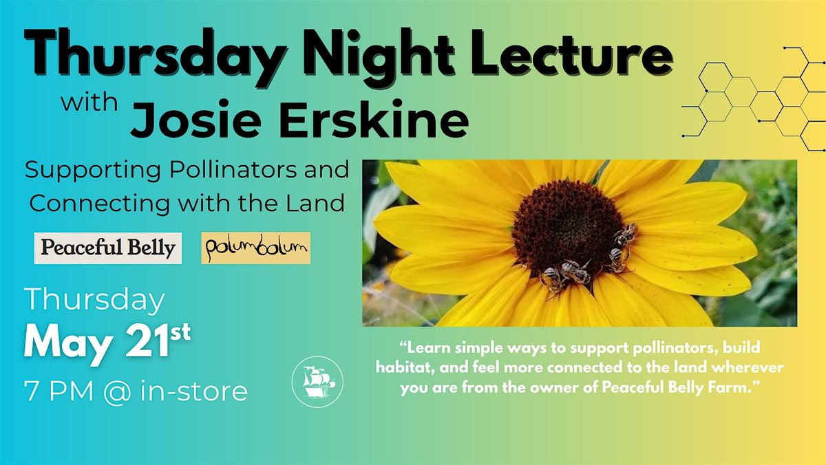 Join us in person for an engaging talk with Jody Erskine from Peaceful Belly Farm all about supporting pollinators, connecting with the land, and how we can better support local farmers! Discover fun and easy ways to help our buzzing friends thrive right in your backyard. Whether you're a garden pro or just curious, this event is a great chance to learn and connect. Don't miss out on the buzz—come and get inspired!