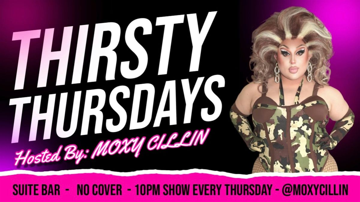 Thirsty Thursdays at Suite Bar is a fierce high-energy drag show with lip syncs, bold looks, big laughs & nonstop fun—hosted by Moxy Cillin!