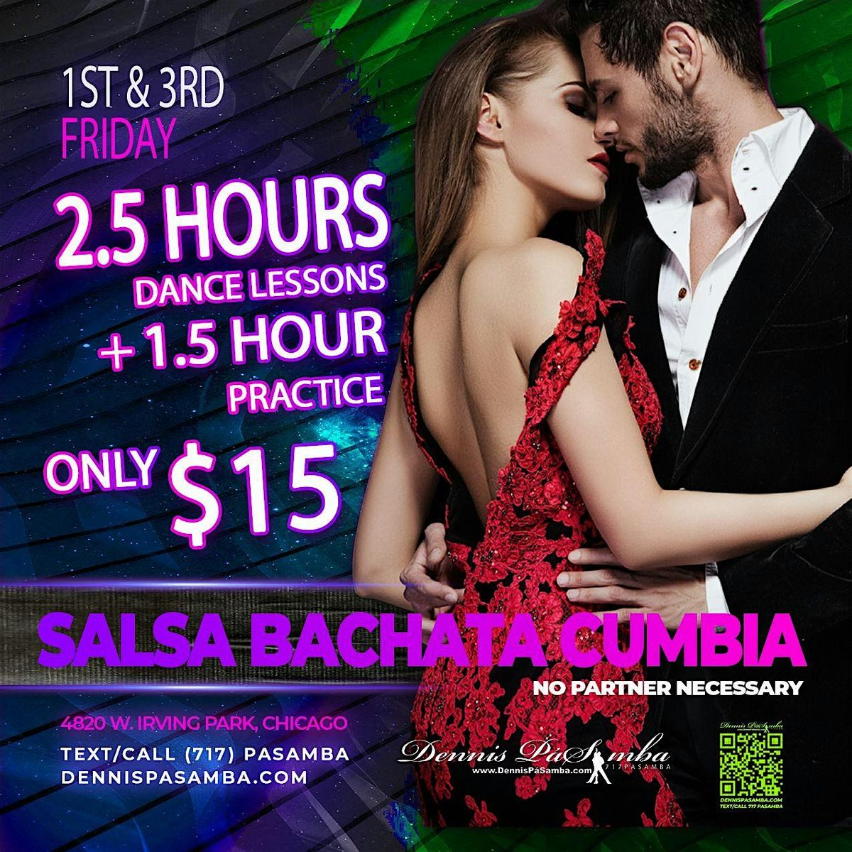 #SalsaChicago #BachataChicago #CumbiaChicago #LatinDanceChicago #DanceClassesChicago #ChicagoSalsaClasses #BeginnerSalsaChicago #SalsaLessonsChicago #BachataClassesChicago #AffordableDanceChicago #DennisPaSamba #ChicagoDanceStudio #PortageParkDance #ThisFridayDance #7PMDanceClass #4HoursFor15