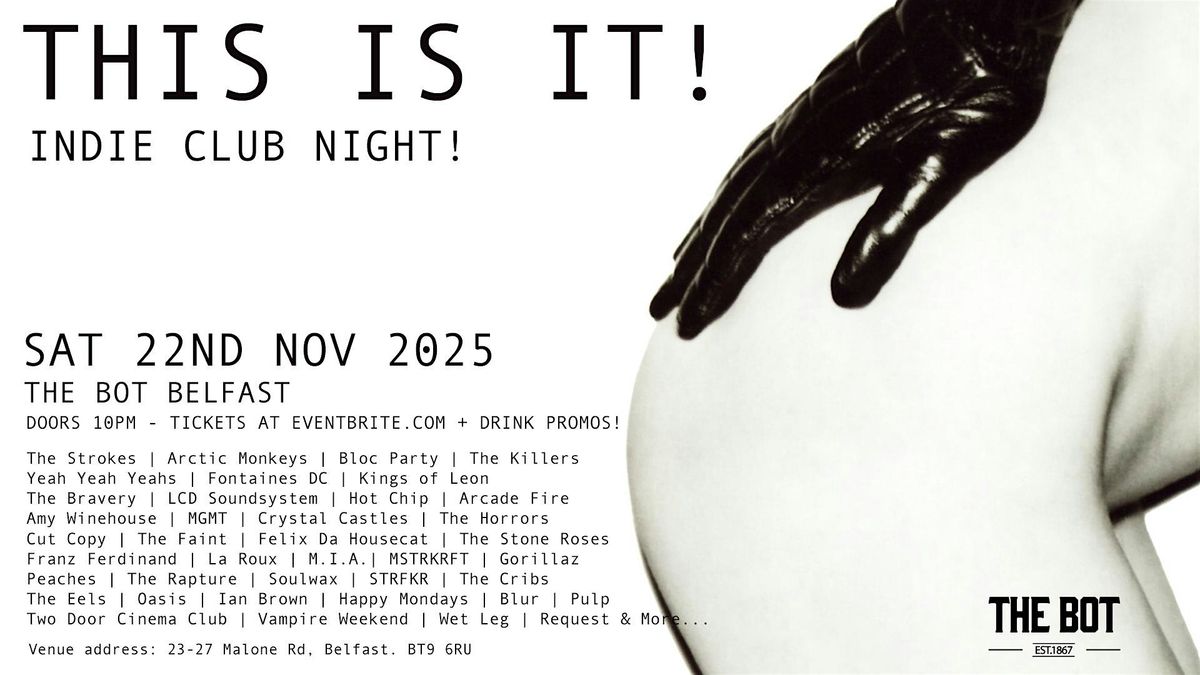 This Is It! Indie Night at The Bot Belfast - Saturday 22nd Nov 2025 - Doors 10pm