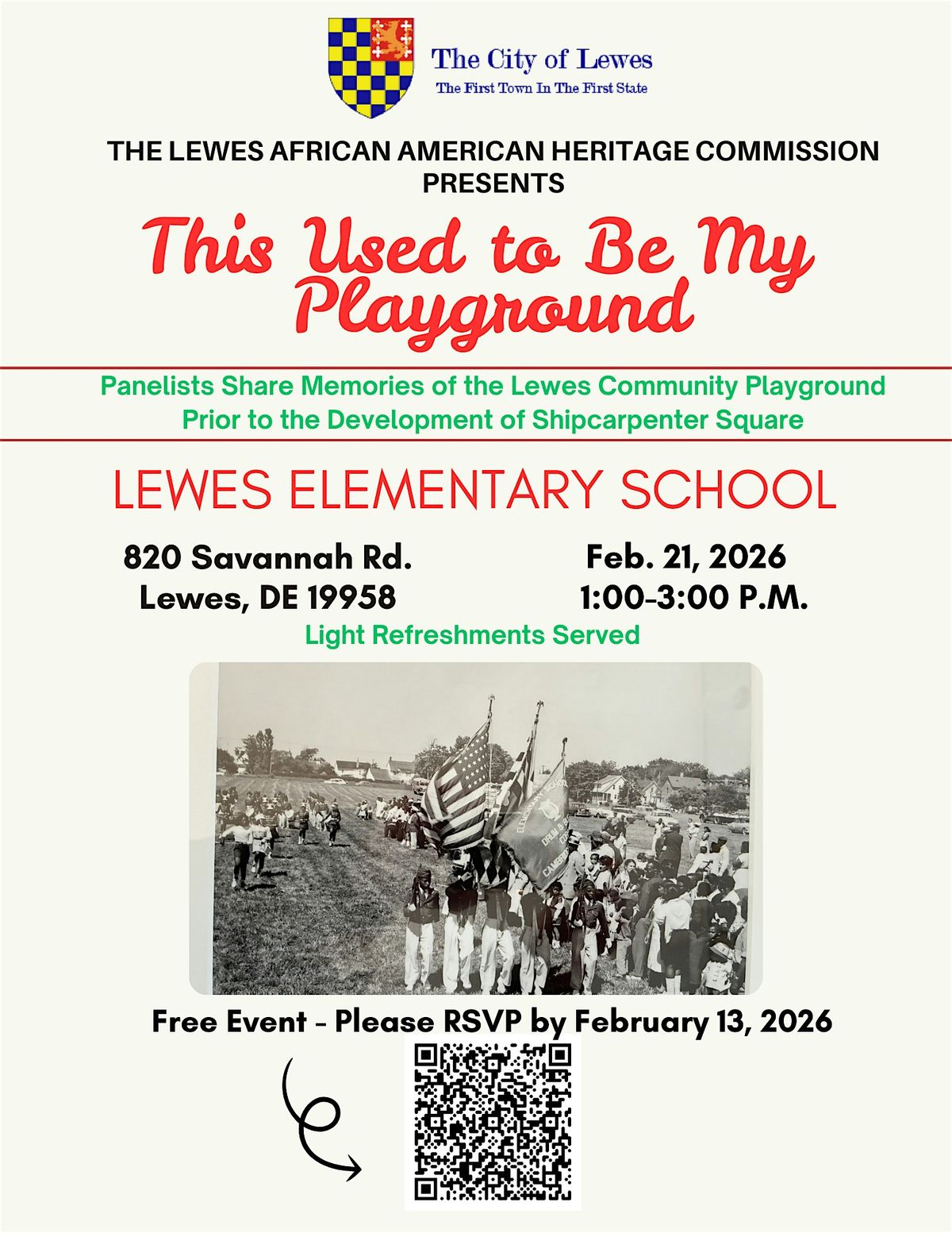 Step back in time and join us for an afternoon of shared memories, stories, and community connection. This Used to Be My Playground will be a reflective gathering centered on reminiscing about childhood, neighborhood spaces, and the places that helped shape Lewes.