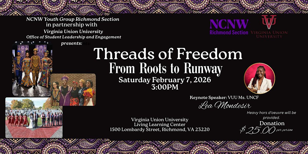 Threads of Freedom: From Roots to Runway is a dynamic showcase celebrating the richness, resilience, and legacy of Black history through fashion, storytelling, and creative expression. Each walk down the runway represents a chapter of our past, honoring our roots while highlighting the evolution of culture, identity, and freedom.