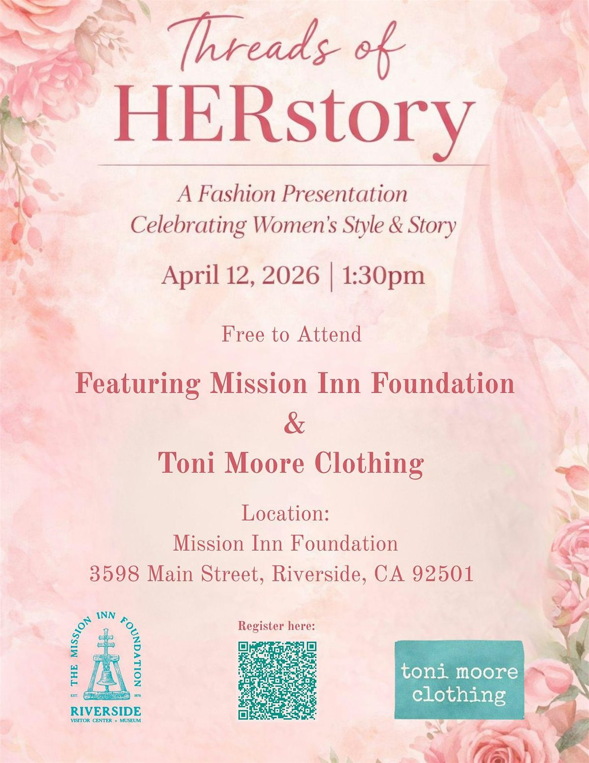 A Fashion Presentation Celebrating Women's Style & Story presented by the collaboration of the Mission Inn Foundation and Toni Moore Clothing.