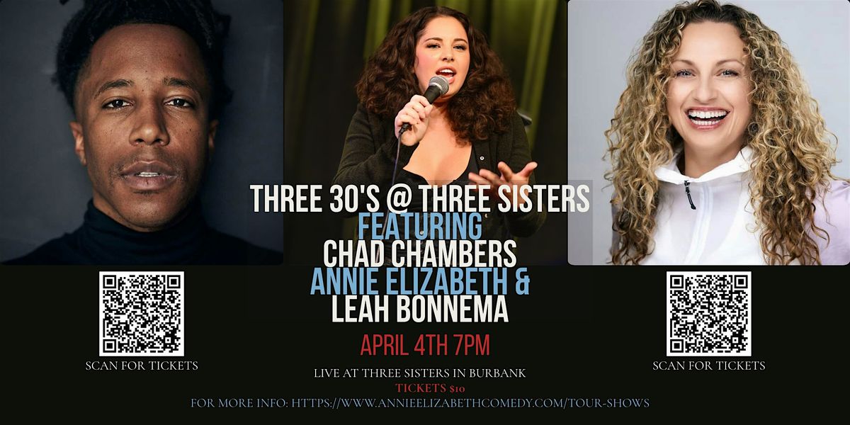 Get ready for an epic night of laughs in person at Three Sisters! Three comedians performing for 30 minutes each bringing a hilarious mix of stories, jokes, and crazy observations. Perfect for anyone who loves sharp wit and good times. Don't miss out on this fun-filled standup comedy event that'll have you rolling in the aisles!