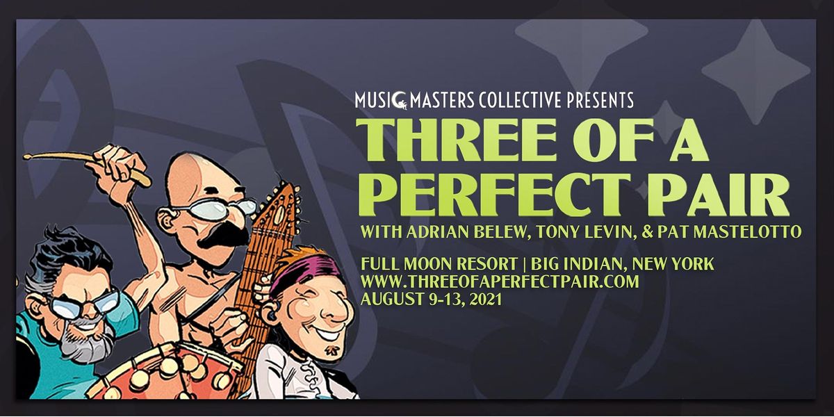 Adrian Belew, Tony Levin and Pat Mastelotto return to Music Masters Camps at Full Moon Resort for their Three Of A Perfect Pair Music Camp. The weeklong getaway – starting Monday, August 10 to Friday, August 14, 2020 – will feature performances, workshops, social and recreational activities, all set against the idyllic backdrop of the Catskill Mountains.