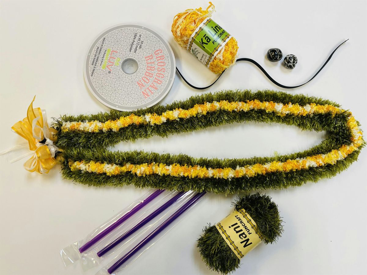 This is your chance to learn from one of our experts how to make this beautiful three straw lei. We will demonstrate basic eyelash yarn lei making with a little twist. Please come 10 minutes prior to start time so you can choose your KaLina and Nani yarn colors.
