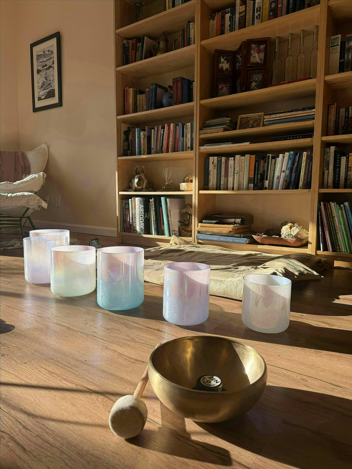 This intimate 75-minute sound journey invites you to cross the threshold from doing into being, from tension into deep rest. Through crystal and metal singing bowls, aromatherapy, and guided breathwork, we create a multi-sensory experience for your nervous system to soften, release, and remember its own rhythm.