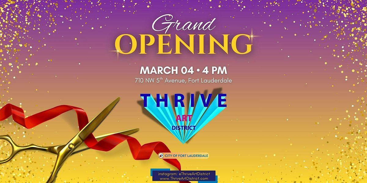 Join us for the Grand Opening of the Thrive Art District! We'll be kicking things off at 710 NW 5th Ave on March 4, 2026 at 4:00 PM. Come enjoy live music, appetizers, and entertainment in the Music Square, explore amazing art, and celebrate with the community. It's gonna be a fun, laid-back afternoon you won’t want to miss!