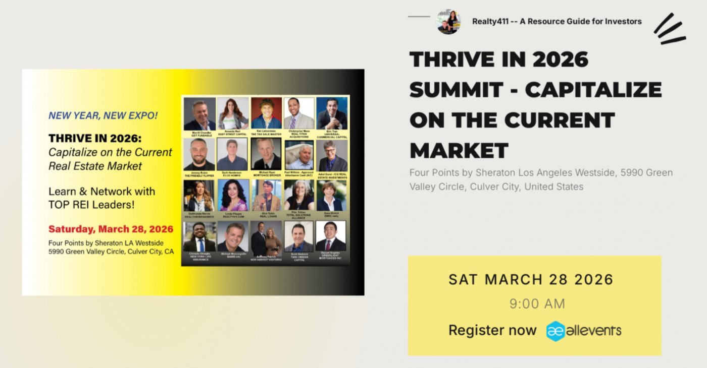 Network with sophisticated investors from across the country in beautiful Southern California. Join us for Realty411's "Real Estate Summit - Thrive in 2026!"