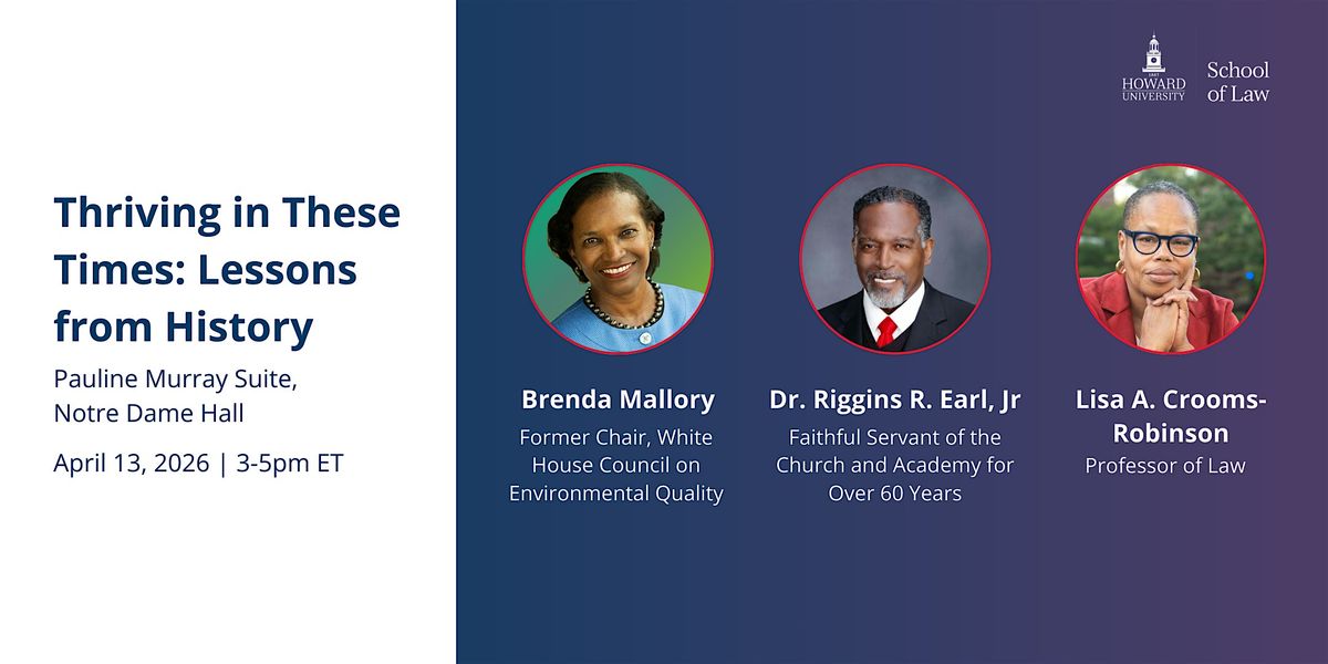 The Howard University School of Law welcomes students, faculty, and staff to Thriving In These Times, a development series focused on building leadership & resilience skills in an era of uncertainty. Experts working across disciplines to improve the lives of people will draw on their personal and professional journeys to offer practical insights and honest conversations on how to continue making progress and thrive in the moment.