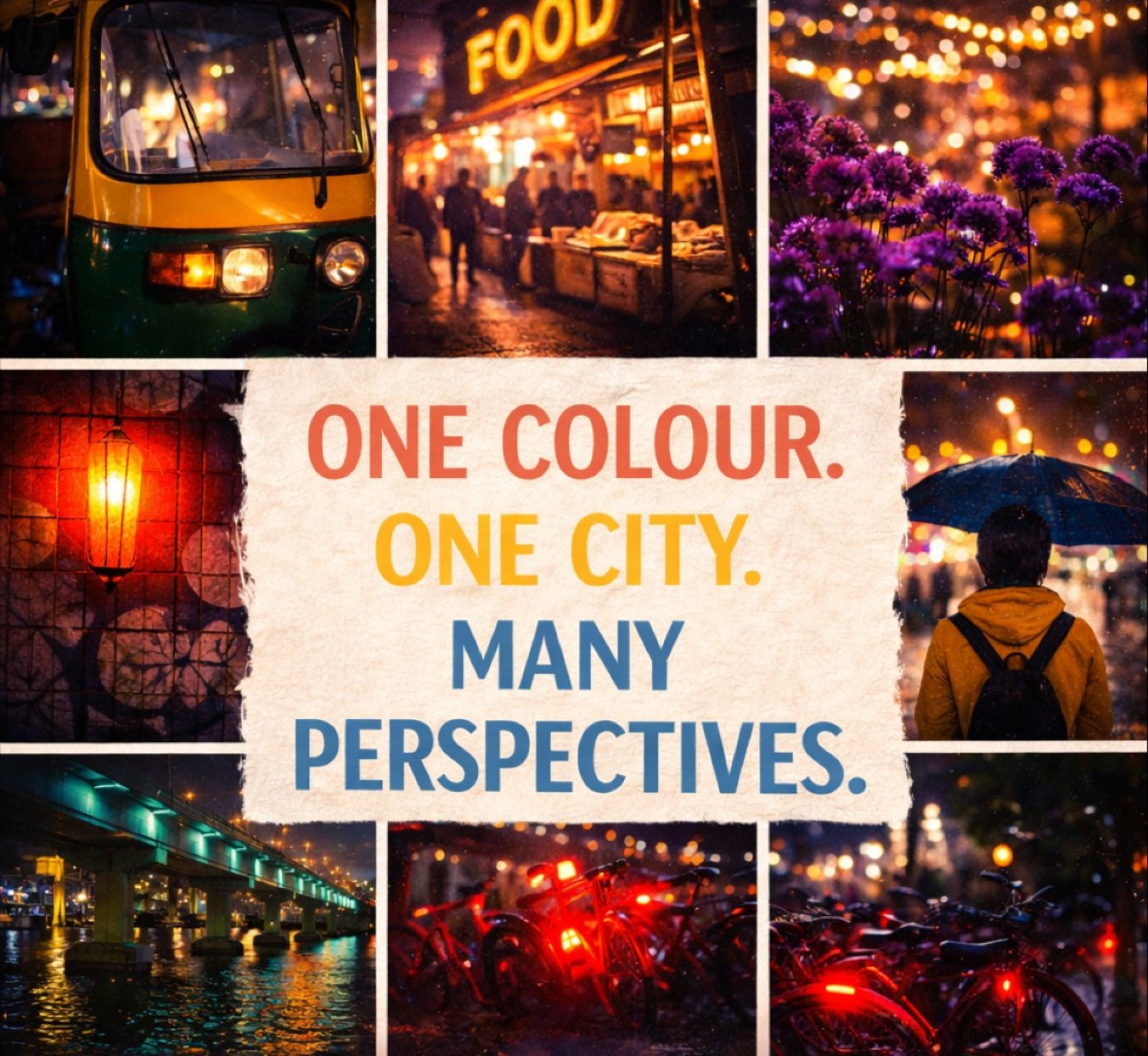 All the while, you look for your colour in the night in lights, signboards, vehicles, neon, glass, people, and unexpected moments. Click what catches your eye.