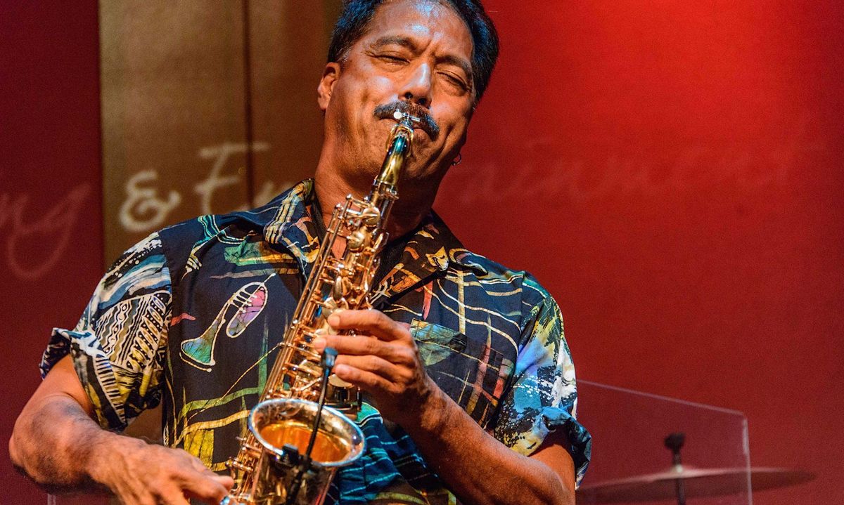Paulo grew up in a musical family (his father a pianist, his mother a singer, his siblings all playing instruments) and though he came upon the sax relatively late at age 15, he quickly became first horn player in his high school band and was playing professional gigs around the islands within a few years. Rather than accept a scholarship to North Texas State, he chose a more adventurous road by joining Hawaiian pop/rock band Kalapana, which had some success on the mainland but was most popular in Japan. After playing regularly and recording on all four of Kalapana’s albums from 1975 through 1979, Paulo recorded a solo album for Japanese release on Trio records. In addition to exposing him to the Japanese jazz audience, Tats in the Rainbow gave him the opportunity to work with legendary pianist Herbie Hancock.