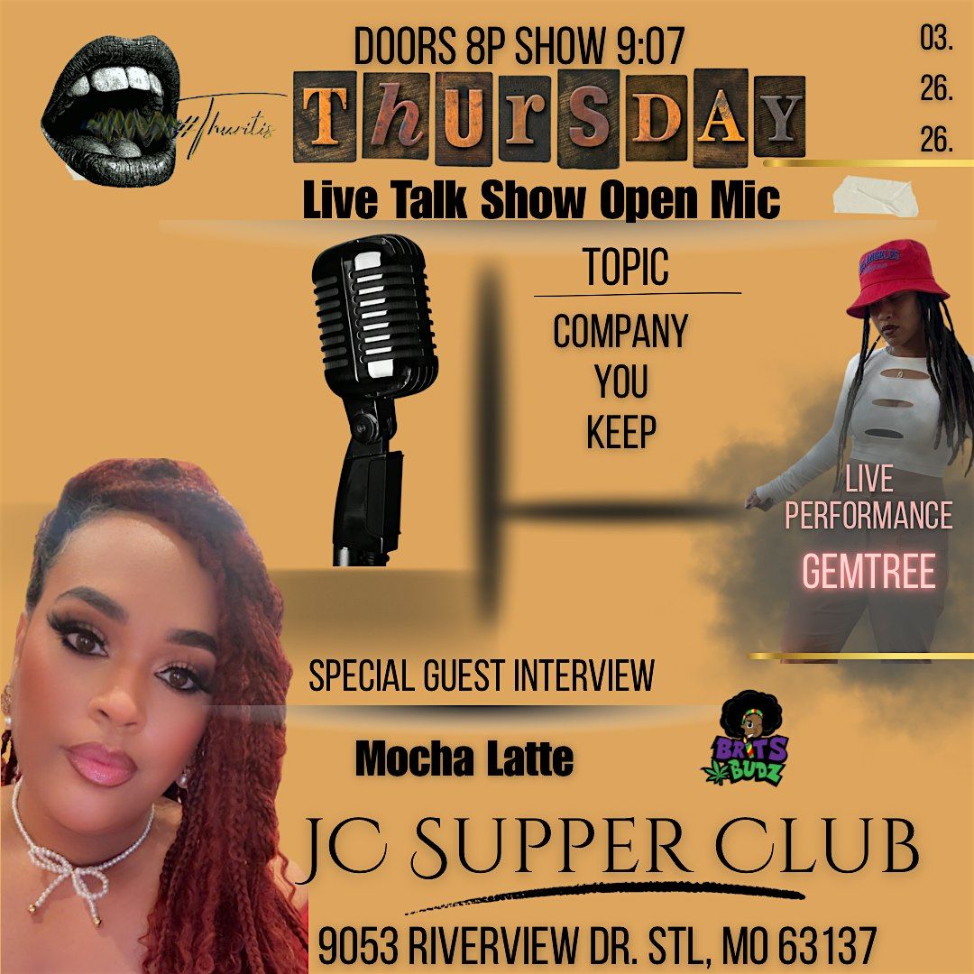 Join us in person for the coolest Thursday Live Talk Show Open Mic! Whether you're here to perform or just vibe, it's all about good talks, laughs, and connecting with awesome people. Grab the mic, share your story, or just kick back and enjoy the show. See you there for a fun and laid-back evening!