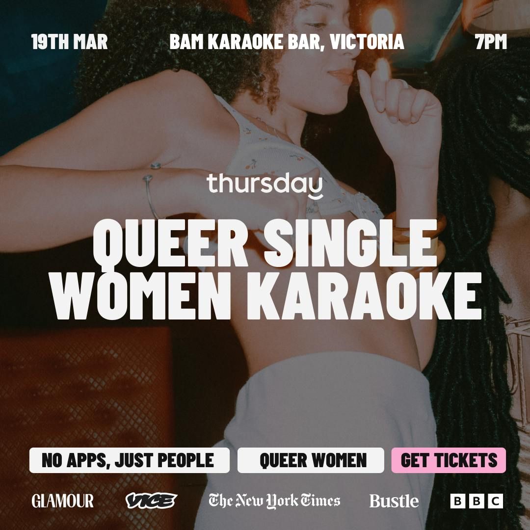 Just a bar, everyone single. Because the world in 2026 is all about meeting IRL, not on dating apps!Hey London queer female singles! Lovely to see you all again! For the first time we are hosting a queer singles women night at BAM Karaoke bar in Victoria!