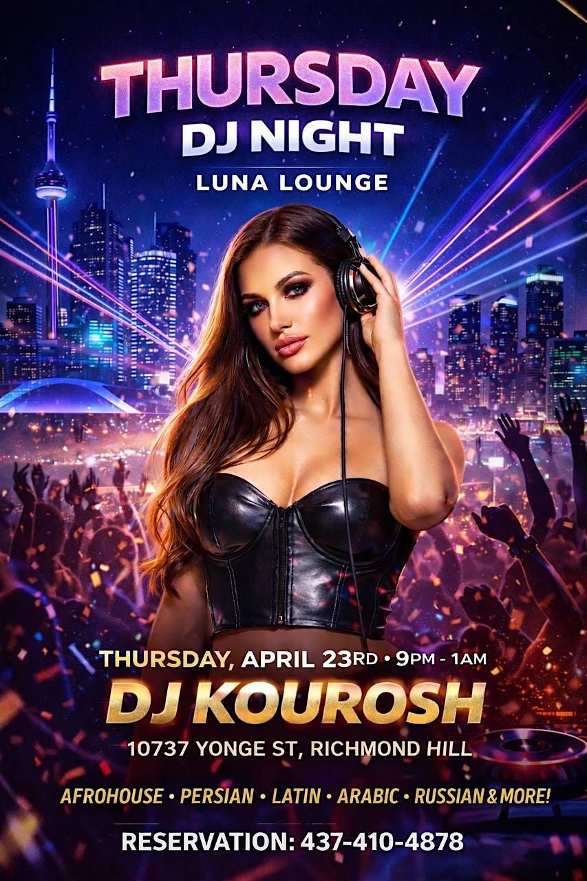 Get ready for an unforgettable DJ Night Party in Richmond Hill! Join us at Luna Lounge for an energetic night filled with Persian, Latin, Russian and Top40 hits spun by DJ Kourosh.