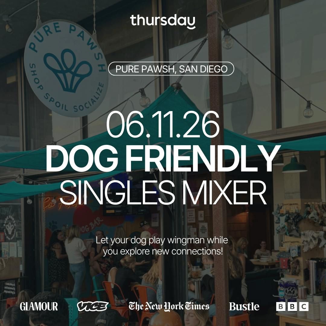 The world in 2026 is all about meeting IRL, not on dating apps!Are you a single dog mom or dog dad? Join us for a singles mixer where the pups break the ice and the vibes are effortlessly fun. We will be taking over Pure Pawsh in North Park San Diego on Thursday June 11th at 6:30pm. Come mingle, sip, and maybe meet someone who loves dogs just as much as you do. And let's be honest, we all know your dog has the best judge of character 😉