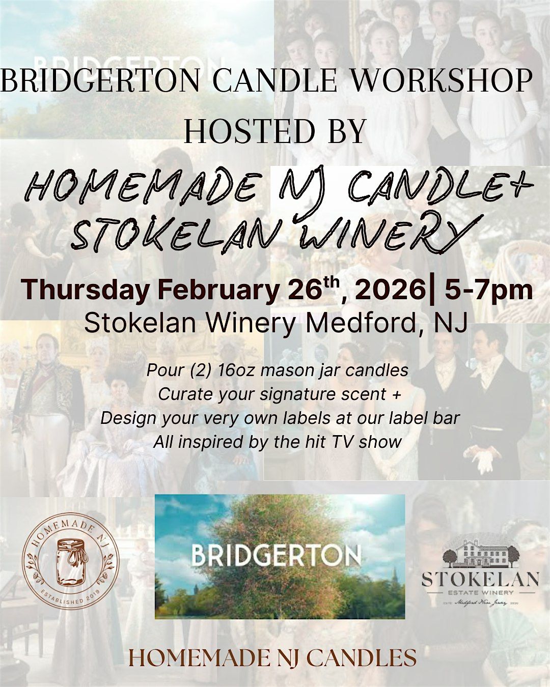 THURSDAY FEBRUARY 26TH Bridgerton candle workshop at Stokelan Winery