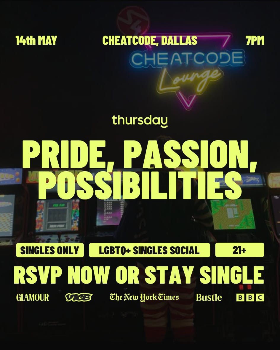 Thursday | LGBTQ+ SINGLES | Pride, Passion, Possibilities @ CheatCode | Dallas