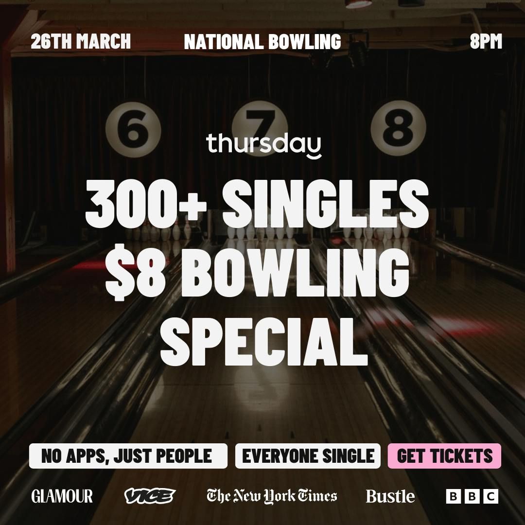 đ¨ When this event sells out, due to overwhelming demand, more tickets will be released at 9pm on a one-in-one-out basis â ď¸SPRING IS IN THE AIR. NEW CONNECTIONS ARE BLOOMING.With the city finally shaking off the winter chill, itâs time to trade the heavy coats for bowling shoes! Weâre celebrating the arrival of spring and the season of new beginnings with a massive 300+ Singles Bowling Event.We're back at NTNL Bowling - and to celebrate, TICKETS ARE ONLY $8 for Early Bird and General Admission. Get ready to connect with singles from across the city in a fun and relaxed atmosphere.Â