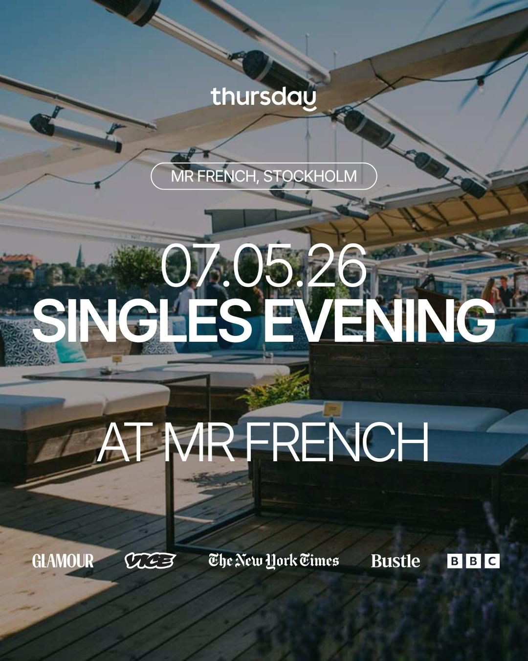 Follow your local Thursday Instagram account to be in the know of whatâs coming up: Thursday | Stockholm đFollow the global Thursday Instagram account đIf you have any feedback about a specific event or about Thursday in general please use this form.By purchasing a ticket to a Thursday Event you are agreeing to our Privacy Policy and agreeing to abide by our Code of Conduct. For any complaints please use this form.