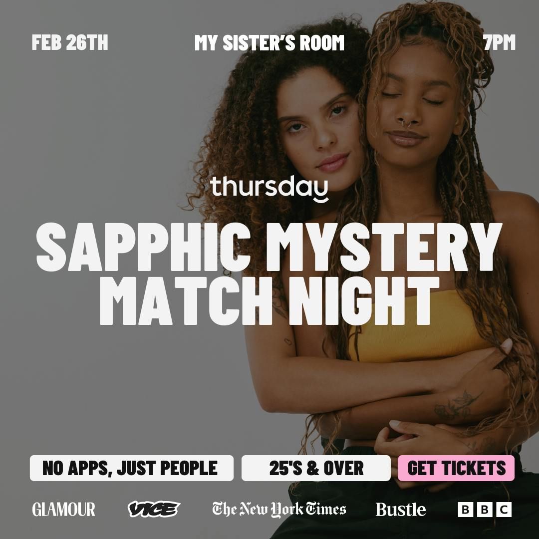 🌈 This one is for the sapphic community. 💖We’ve heard how many of you are ready to get off the apps and meet people in real life — so we’re hosting Sapphic Mystery Match Night, a low-pressure, in-person dating experience centered on chemistry, curiosity, and connection.