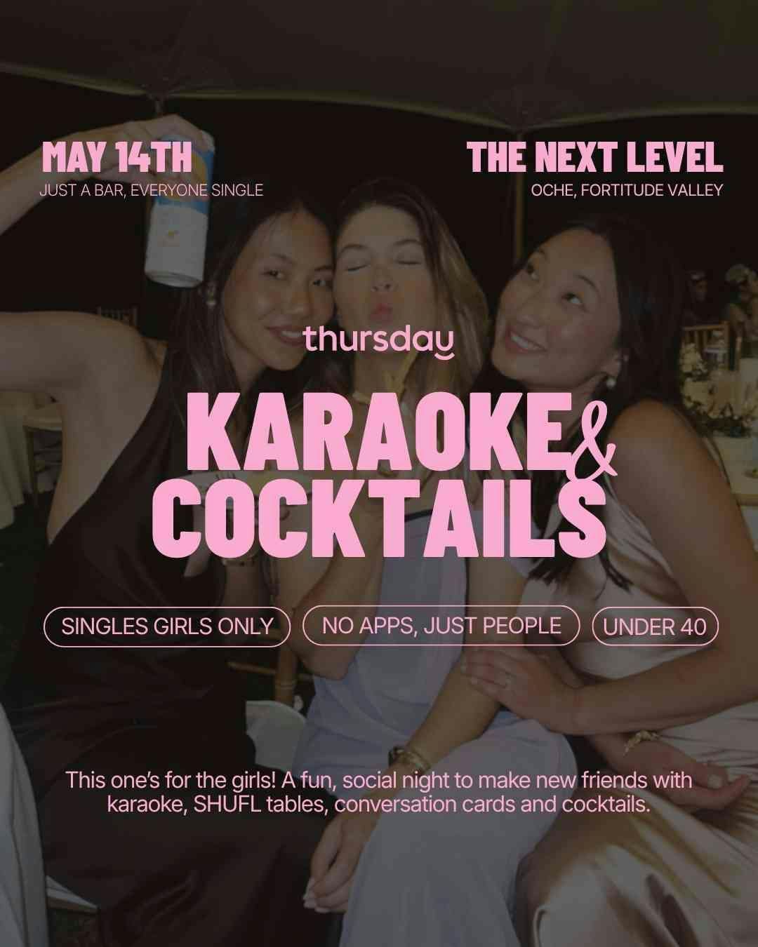 Welcome to our first ever Single Girls Only Karaoke & Cocktails night at The Next Level 💫
